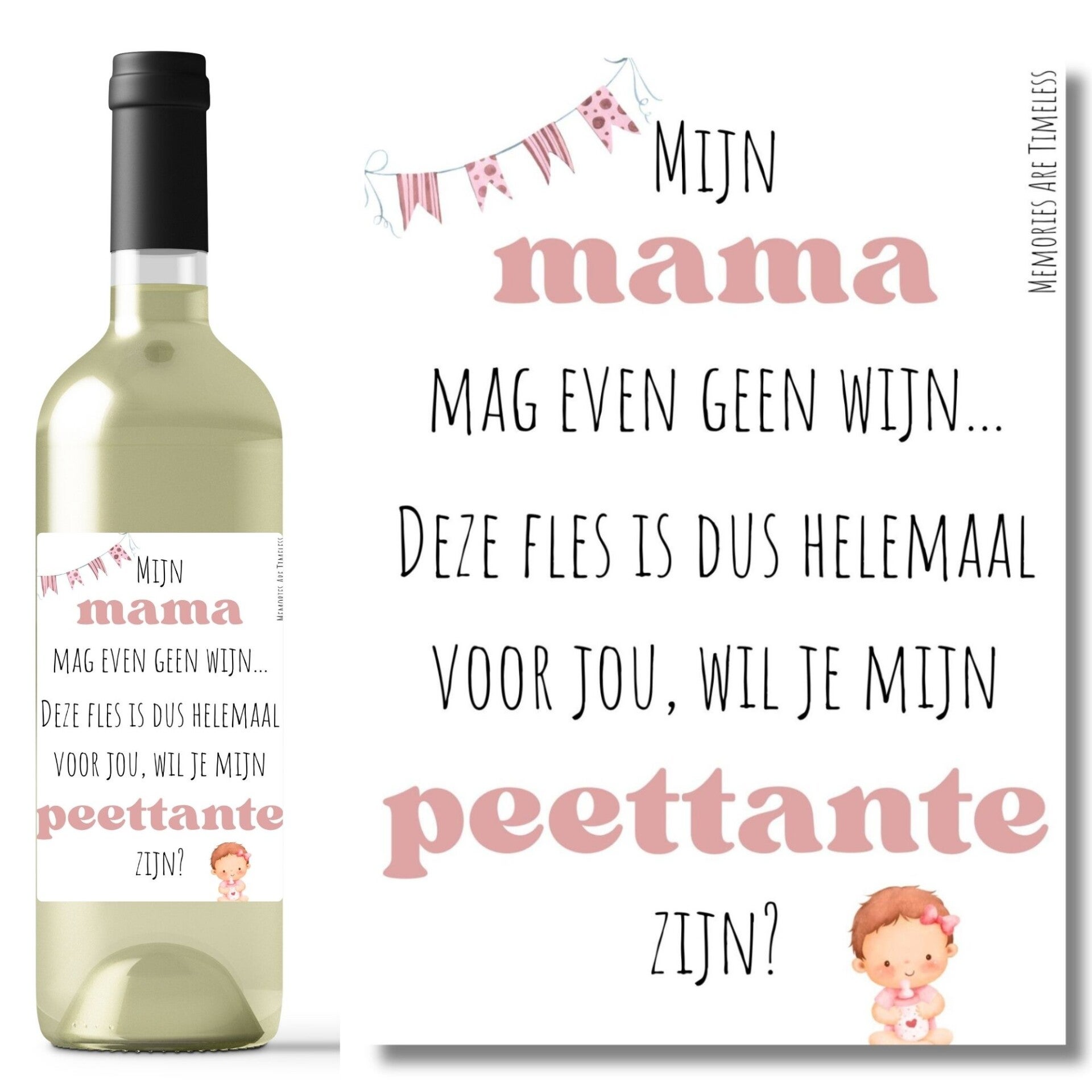 - Wijnetiket | Mijn mama mag even geen wijn....Deze fles is dus helemaal voor jou, wil je mijn peettante zijn?