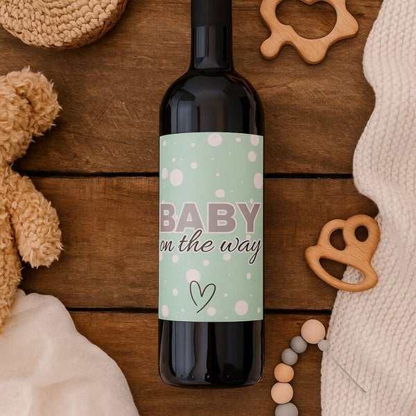 Wijnetiket | Baby on the way | Dots mint