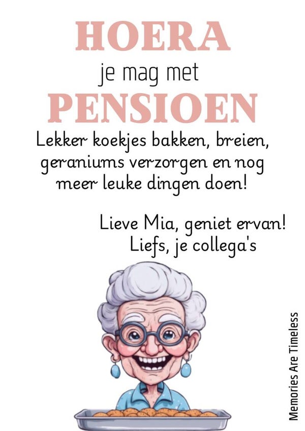 - Wijnetiket | Pensioen | Geraniums en koekjes bakken