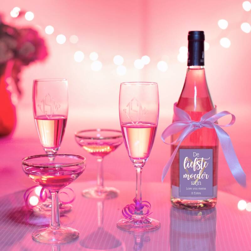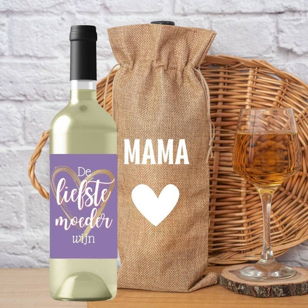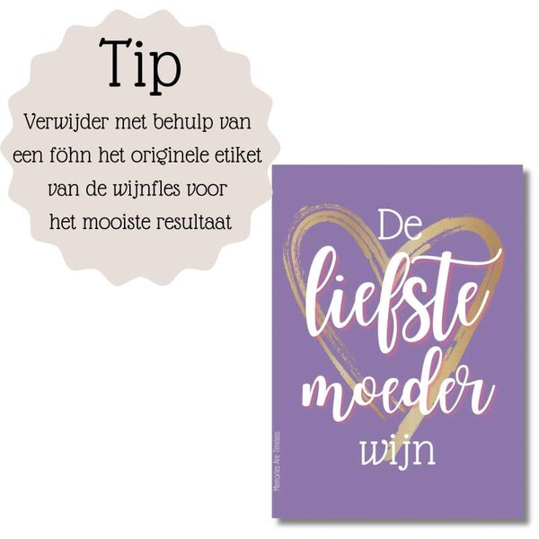 Wijnetiket | Liefste Moeder Wijn | Paars Hart